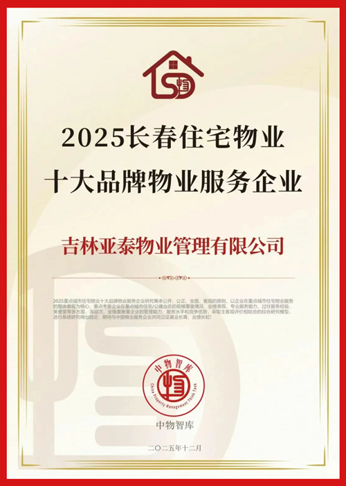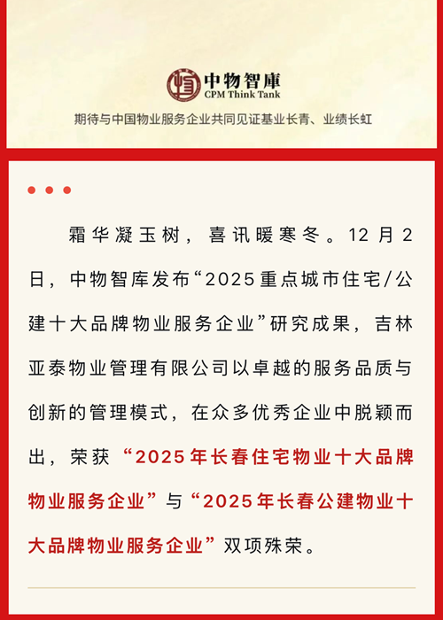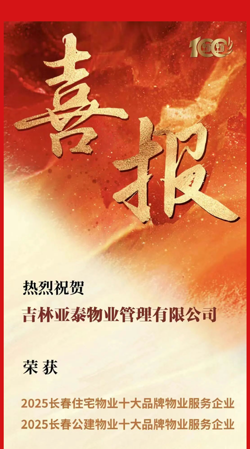 双榜题名,载誉而归——亚泰物业荣获2025年长春住宅及公建物业十大品牌物业服务企业